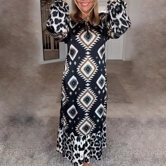 Damska sukienka z długim rękawem w stylu artystycznym, z nadrukiem
